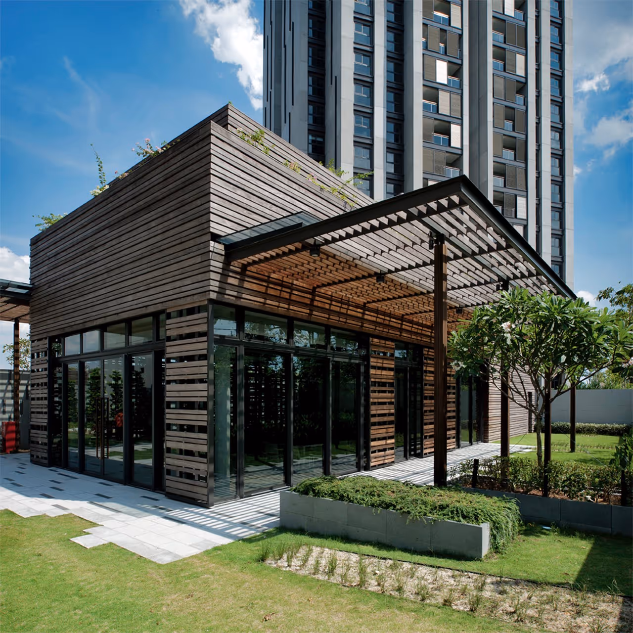 The use of sliding louver doors on its façade not only enhances its aesthetic appeal but also provides excellent light control, making it an outstanding example of sustainable and tropical urban living.