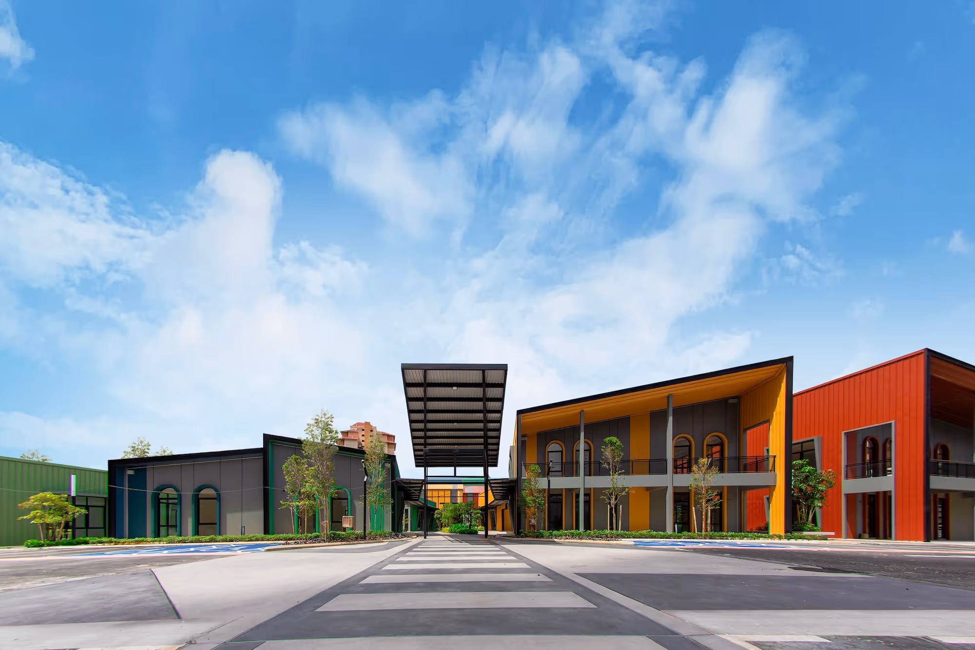 Strategic pocket spaces and diverse shops in the urban plan foster community connections, while vibrant facades and inclusive venues warmly welcome the local community.