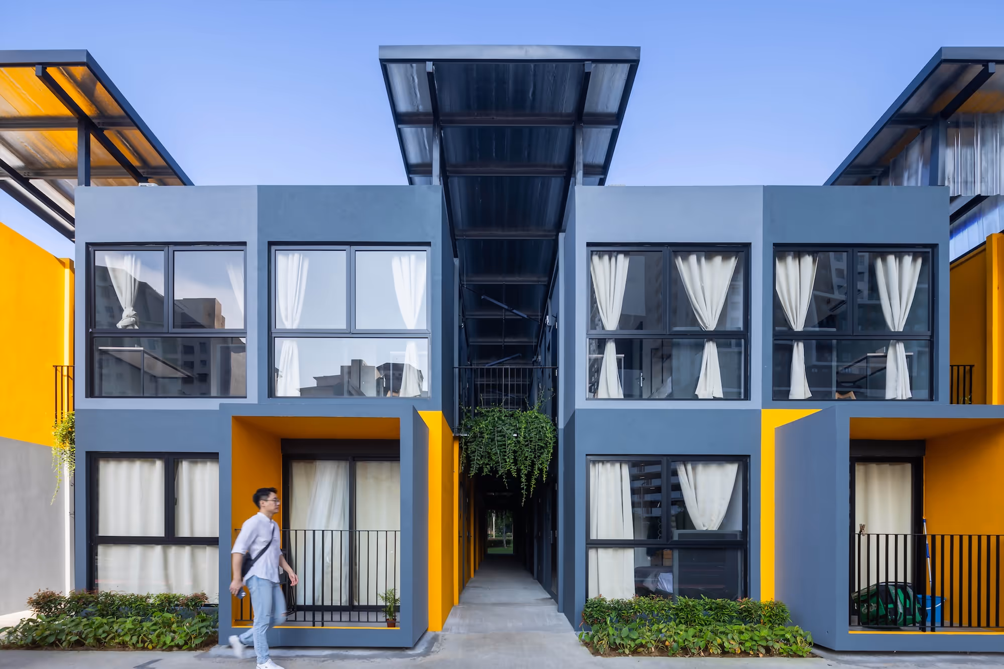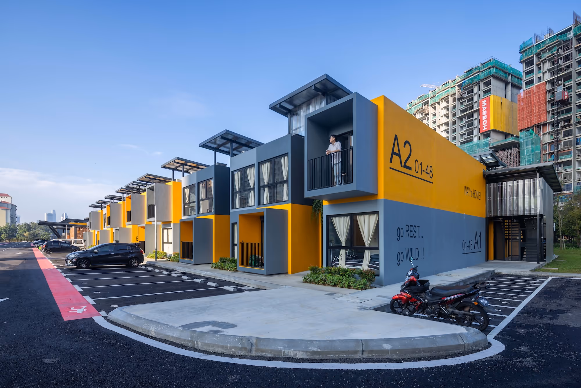PPVC is a time-saving, productive and clean construction technology / method. The architect's approach to use PPVC is perfectly suitable for a fast track project like this temporary hostel building. The architect also able to soften the aesthetic of the design by playing with catchy colours and form of the hostel unit. The common areas has a natural design approach to balance the value of the art and design.