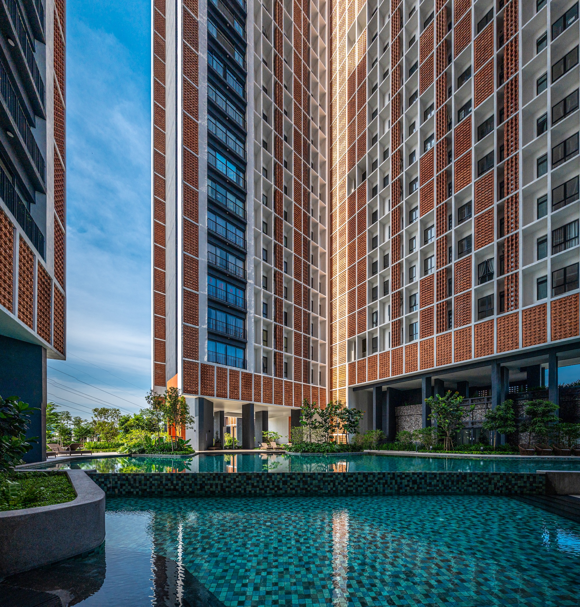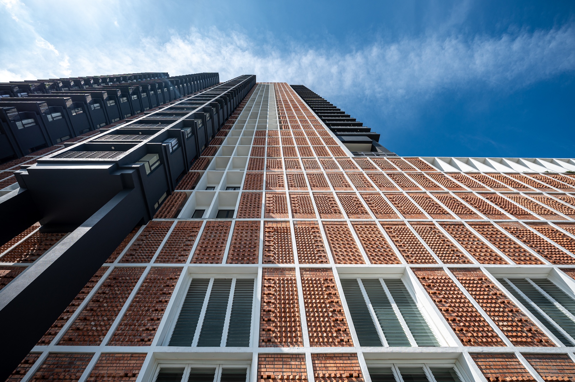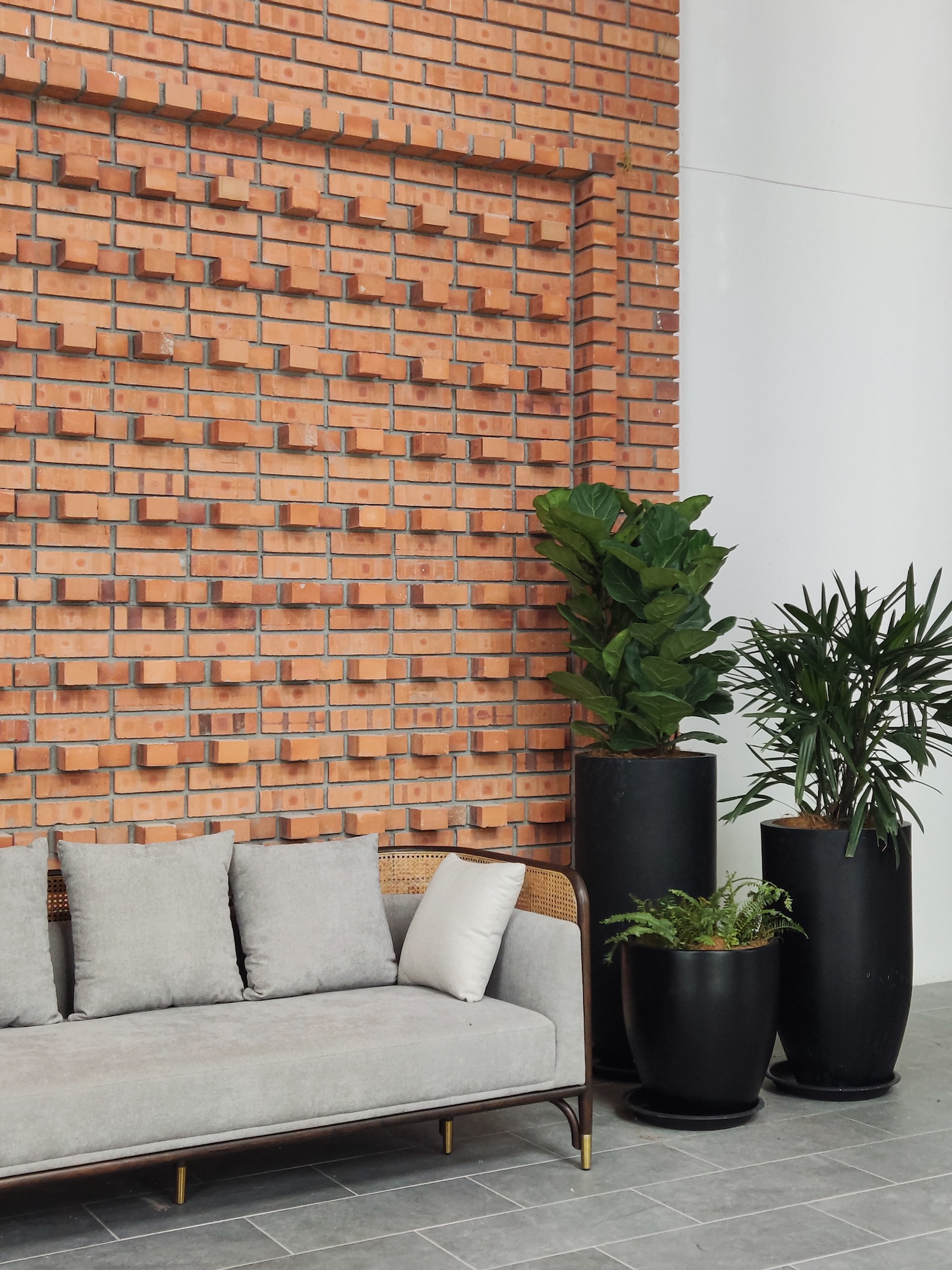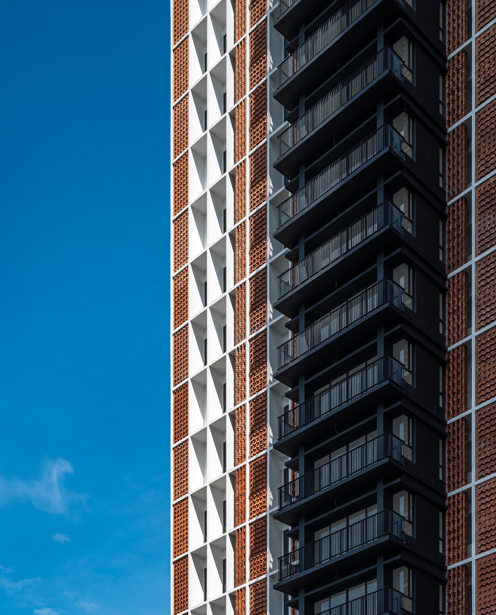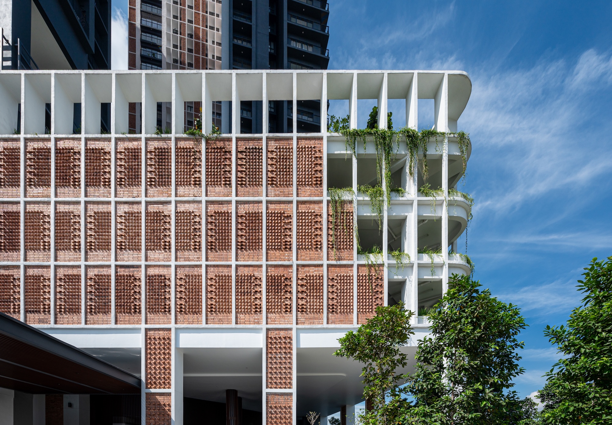 A delightful interplay of brickwork, interspersed with voids and open spaces, creating a visually inviting, very open and welcoming environment